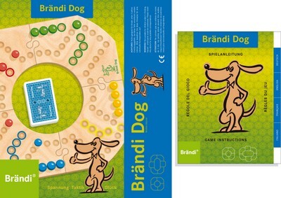 Brändi Dog ist ein spannendes Brettspiel mit Langzeitmotivation, dass im Team und mit Bridge-Karten gespielt wird. Ähnlich, wie bei "Eile mit Weile" geht es darum, die eigenen Murmeln im Zwinger zum Start und ins Ziel zu bringen. Dabei wird man vom Teampartner unterstützt und von der Gegenpartei "heimgeschickt". Die gezogenen Karten bestimmen wie man weiterkommt. Die Kartenwerte können auf Spielzüge oder auf die Teampartner aufgeteilt werden. Gewinner ist das Team, welches geschickt zusammenspannt und als erstes die Murmeln ins Ziel bringt.